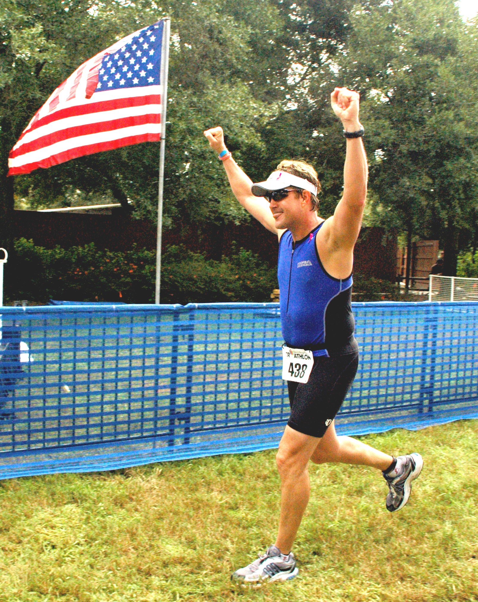 The picture above was on such a great day of victory for me. I was finishing an Olympic Triathlon (swim 1 mile, bike 35 miles and run 6 miles.) I trained hard and was so excited to finish that day!