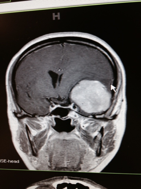 I write this as I am flying to Nashville to join my parents and siblings to be there for my sister’s brain surgery. Even as I type this, it still is pretty surreal. As I was preparing for service two weeks ago, I received a call from my sister explaining that they found a tumor the size of a racquetball in the meningeal area between her brain and skull. There were tears, a promise to talk more the next day and the statement, “I’ll send you a picture.” It was the one above…and when I saw it for the first time, I gasped.